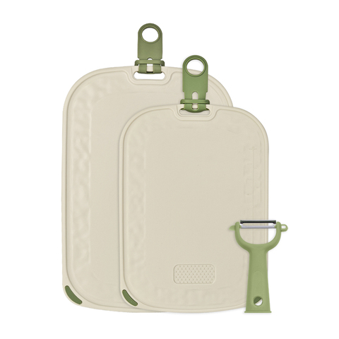 Poignée facile à saisir 2 pièces de planche à découper en plastique pour fruits et légumes avec éplucheur pour la cuisine Utilisation en extérieur Blocs à découper durables