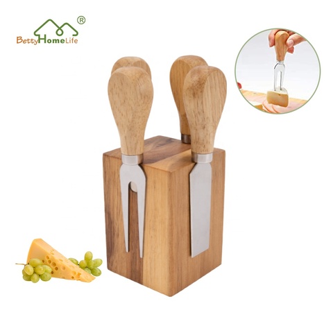 Set di 4 affettatrici per formaggio in acciaio inossidabile affettatrice per rasoio forchetta per taglierina per formaggio Set di coltelli con manico in legno ceppo magnetico per coltelli